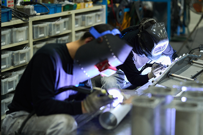 100個以上の大量生産の時に、独自のプログラムでスピーディかつ効率的に溶接します。