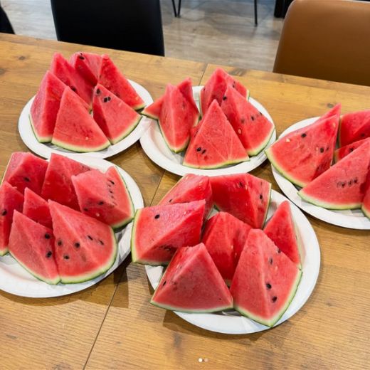 ツーナインジャパンの社長様からスイカをいただきました 2025.05.27 お知らせ 昨日、ツーナインジャパンさんの二九社長がスイカ🍉を持ってきてくださいましたっ😊 お昼休みにみんなでいただきました!スイカ大好きなのですーごく甘くてとても美味しかったです☺️ 二九社長ありがとうございました🙇♀️😊