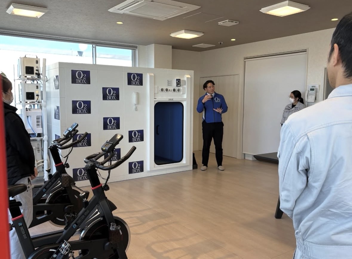 酸素ボックスのタイムワールド様が効果の説明に来てくださいました 2025.12.26 お知らせ健康経営講習 もともとスポーツをされていた方でご自身の体験など含めてお話しくださりとても分かりやすかったです✨ 先週に各部署でそれぞれ30分入らせていただき、みんな体験できたので良かったと思います! 私は冷え症なので、入って数分経ったら手が温かくなったので、血行が良くなっていることが自分で実感出来て嬉しくなりましたっ😂😊 集中力アップや美容にも良いので会社にあると気軽に入れるのでとてもありがたいです☺️