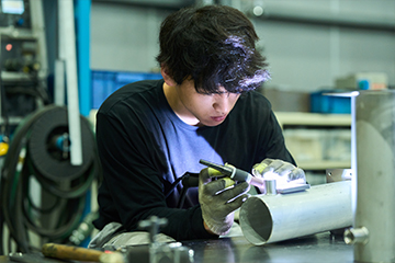 「従業員が幸せにイキイキと働いて欲しい」。そんな思いで、西田製作所は、工場棟と事務所棟の環境づくりに徹底的にこだわりました。工場棟には一年中快適な室温が保たれる空調、清潔感のある男女別トイレ、休憩所を。事務所にはカフェ風のお洒落な食堂、広い更衣室、トレーニングジムなどを作り、従業員が快適に過ごせるだけでなく、部署や年齢差を超えた従業員同士の円滑なコミュニケーションに役立つ憩いの場所にもなるよう工夫を凝らしました。